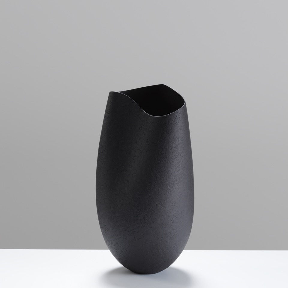 Ashraf Hanna: Black cut and altered vessel, 27 cm high, stoneware, 2020